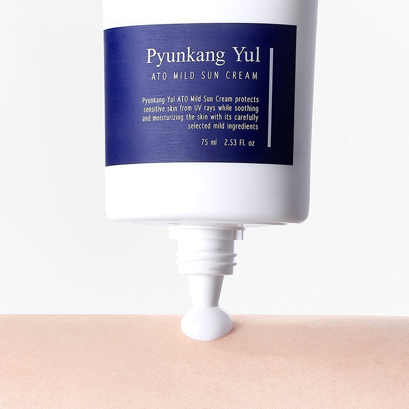 Die Ato Mild Sun Creme von Pyunkang Yul ist eine neue, milde und leichte, aber dennoch hochwirksame Sonnencreme, die keinen weißen Film hinterlässt. Sie enthält EWG-geprüfte Inhaltsstoffe zum Schutz empfindlicher Haut und bietet einen starken Breitband-Lichtschutzfaktor (SPF) 45 PA+++, der vor freien Radikalen schützt. Angereichert mit Hyaluronsäure, Ceramiden und Pflanzenextrakten, beruhigt und pflegt sie trockene, empfindliche Haut.