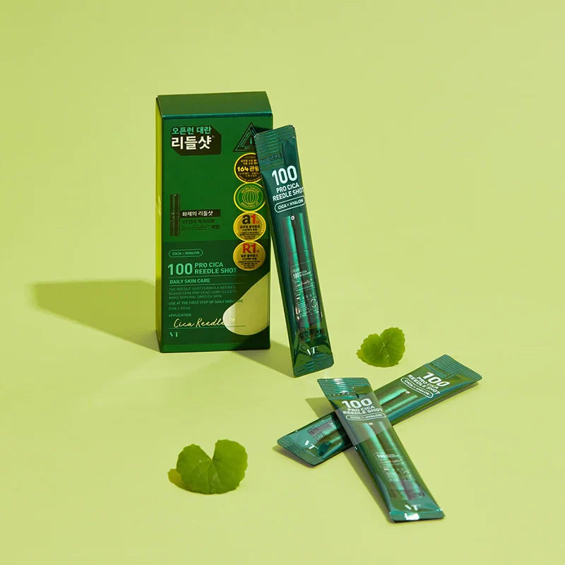 VT Cosmetics Pro Cica Reedle Shot 100 Stick Pouch ist eine intensive Hautpflegebehandlung zur Revitalisierung und Stärkung empfindlicher, gestresster oder geschwächter Haut. Angereichert mit einer hochwirksamen Konzentration an Centella Asiatica (Cica) und innovativer, mikronadelartiger Kieselsäure (Reedle), verbessert diese einzigartige Formel die Hautaufnahme und fördert das tiefe Eindringen der Wirkstoffe. Sie stimuliert sanft die Hautoberfläche, regt die Kollagenproduktion an, verfeinert das Hautbild und beschleunigt den natürlichen Heilungsprozess der Haut. Das Ergebnis ist ein glatterer, strafferer und sichtbar strahlender Teint.