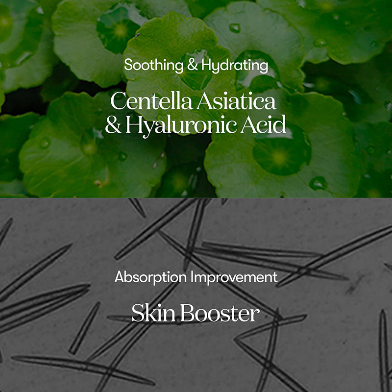 Wasser, Dipropylenglykol, Glycerin, Niacinamid, Butylenglykol, Macadamia-Ternifolia-Samenöl, 1,2-Hexandiol, Ethylhexylpalmitat, Natriumacrylat/Natriumacryloyldimethyltaurat-Copolymer, Polyisobuten, Siliciumdioxid, Glycereth-26, Ethylhexylglycerin, Caprylylglykol, Adenosin, Natriumpolyacrylat, Natriumhyaluronat, Centella-Asiatica-Extrakt, Caprylyl-/Caprylglucosid, Sorbitanoleat, Xanthangummi, Propolisextrakt, Asiaticosid, Madecassosid, Madecassinsäure, Asiatische Säure, Glycin, Serin, Glutaminsäure, Asparaginsäure, Leucin, Alanin, Lysin, Arginin, Tyrosin, Phenylalanin, Threonin, Prolin, Valin, Isoleucin, Histidin, Methionin, Cystein