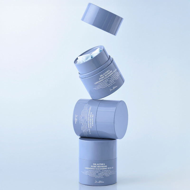 Dr. Althea Pore Refresh Grinding Cleansing Balm is a silky cleansing balm in a unique twist-dispense format that transforms into a cream on the skin. It melts away makeup, sunscreen, and impurities while being enriched with green tea leaf extract, turmeric root extract, rice bran oil, jojoba seed oil, and guaiazulene to soothe redness. The balm features emollients like caprylic/capric triglyceride, cetyl ethylhexanoate, and synthetic wax to gently cleanse yet leave skin soft and hydrated without greasy residue. It is fragrance-free, alcohol-free, vegan, and designed for all skin types, including sensitive skin.