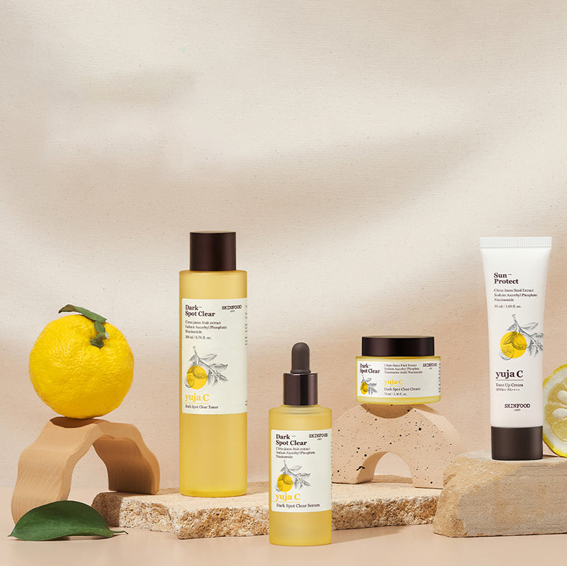 The SKINFOOD Yuja C Dark Spot Clear Cream is a fresh moisture cream that contains 30% Yuja Extract and bursting glutathione vitamin capsules that reduces the appearance of dark spots and hyperpigmentation. Added Niacinamide and Sodium Ascorbyl Phosphate (Vitamin C derivative) help to boost brightening for a clear and glowing complexion.