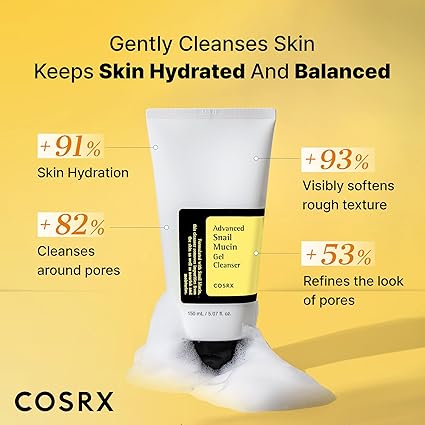 The COSRX Advanced Snail Mucin Power Gel Cleanser is a light foaming cleanser that rinses away dirt, oil, and makeup without disrupting your skin's essential moisture barrier. Designed for those looking for a gentle cleanser that helps soothe irritated skin, it harnesses the regenerative