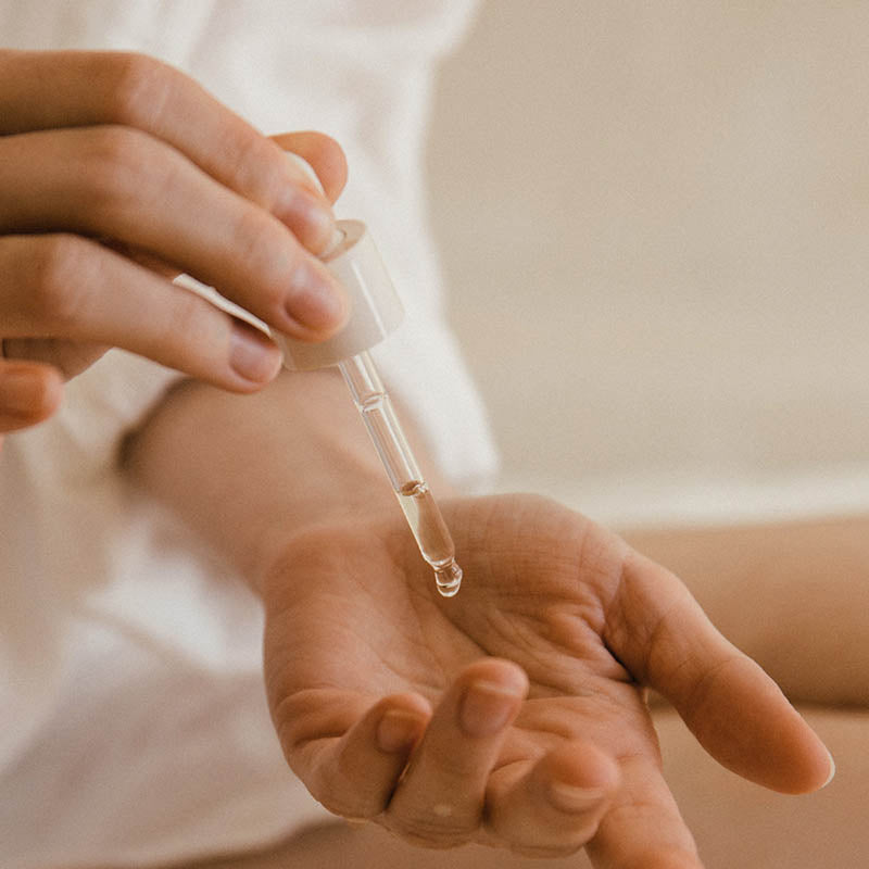 - Apply an appropriate amount of the serum using the dropper to the skin, avoiding the eye and mouth areas.