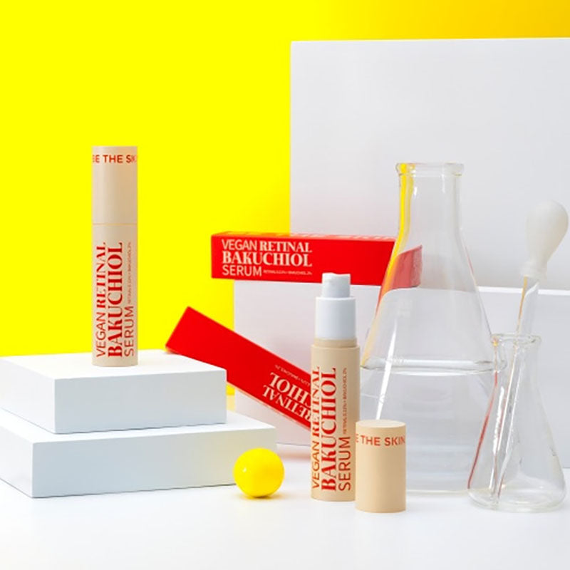 The BE THE SKIN Vegan Retinal Bakuchiol Serum is a hypoallergenic, vegan-certified serum designed to offer the benefits of retinol without the associated irritation. It combines 1,120 ppm (0.11%) Retinal with 20,000 ppm (2%) Bakuchiol, along with Niacinamide, Ceramide Complex, and Peptide Complex, to improve wrinkles, pores, and overall skin texture. The formula has completed skin irritation tests, making it suitable for sensitive skin types.