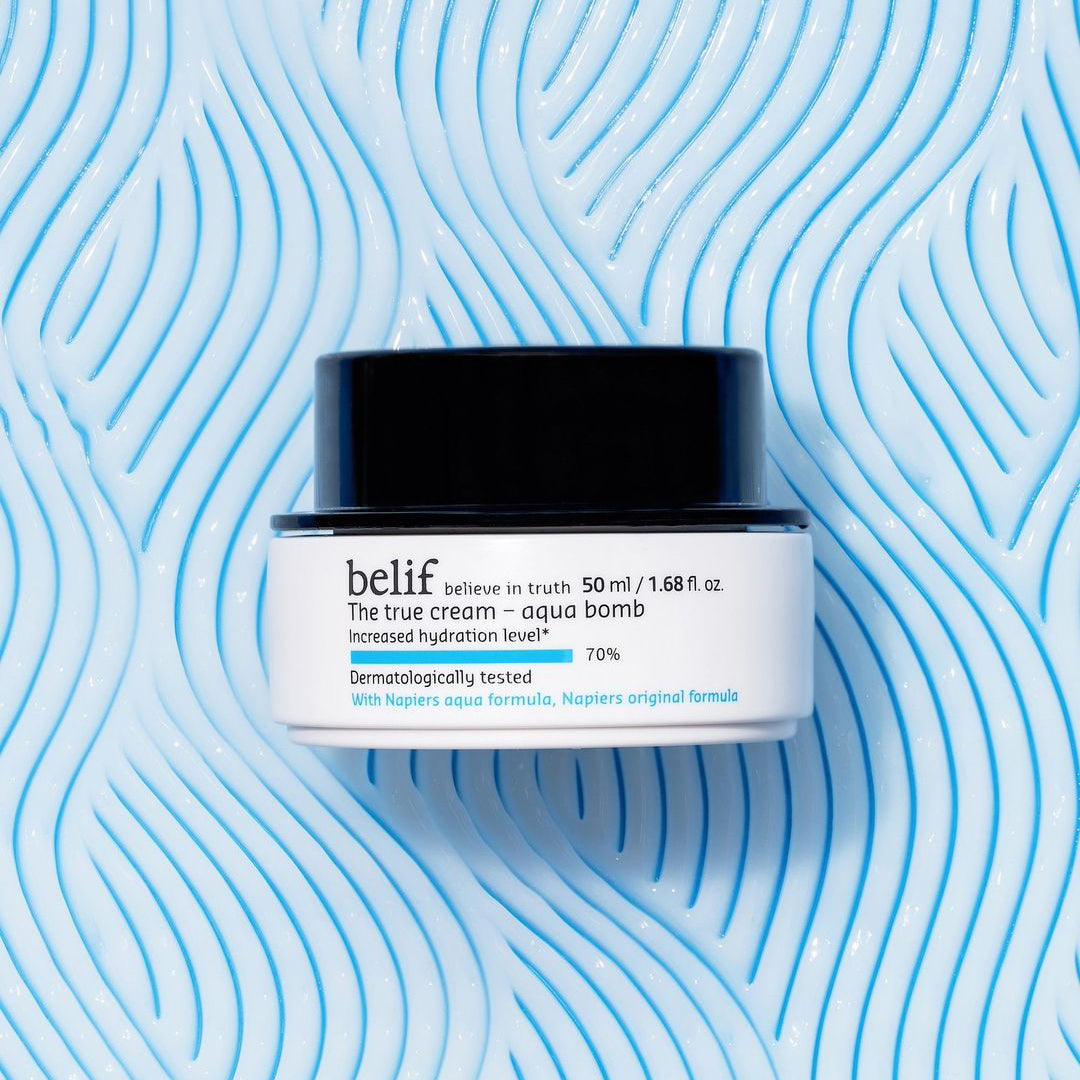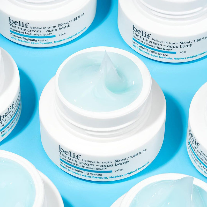 The Belif The True Cream Aqua Bomb is a refreshing, lightweight gel moisturizer designed to provide an instant burst of hydration for combination to oily skin. It absorbs quickly and deeply into the skin, delivering fast-acting hydration to up to 10 layers for a plump and radiant look.
