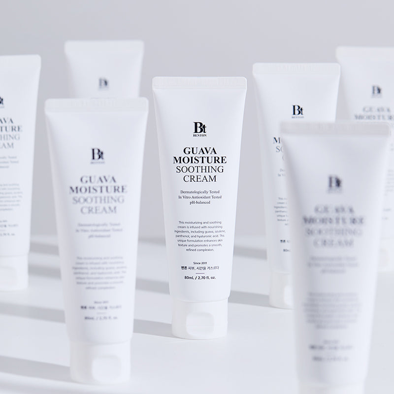 The Benton Guava Moisture Soothing Cream is a rich, gel-cream formula that offers intense hydration and soothing relief, perfect for tired or stressed skin. Infused with Guava Extract and Azulene, this cream helps to calm redness and inflammation while improving skin tone and texture.