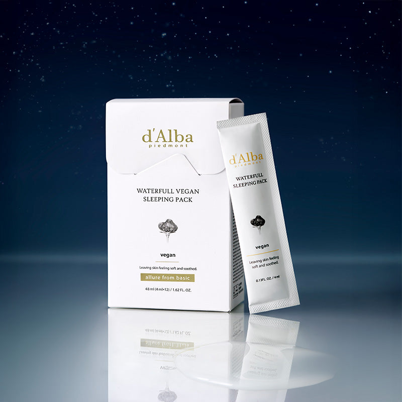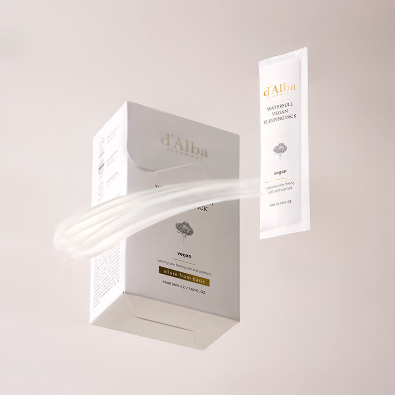 The d'Alba Waterfull Vegan Sleeping Pack is a hydrating overnight treatment designed to rejuvenate your skin as you sleep. Formulated with a blend of natural, plant-based ingredients, this vegan-certified sleeping mask provides deep hydration and nourishment, leaving your skin soft, glowing, and revitalized by morning. Its lightweight gel-cream texture absorbs quickly without stickiness, making it suitable for all skin types, including sensitive skin. The product comes in convenient, single-use 4ml sachets, perfect for travel or on-the-go skincare routines.