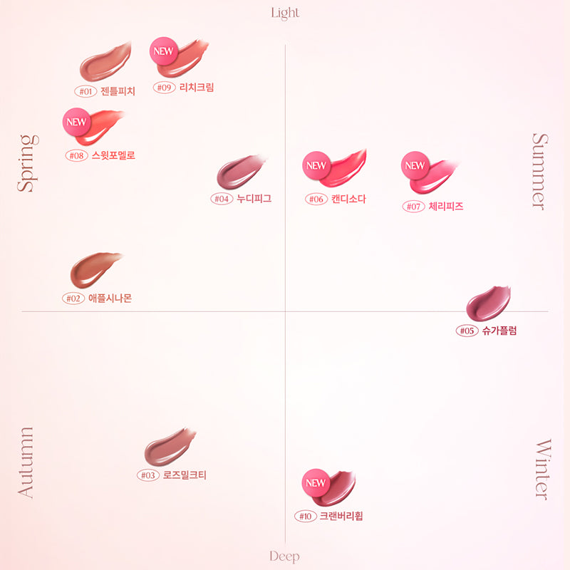 #03 Rose Milk Tea: Hydrogenated Polyisobutene, Dipentaerythrityl Tetrahydroxystearate/Tetraisostearate, Ethylhexyl Hydroxystearate, Tridecyl Trimellitate, Methyl Hydrogenated Rosinate, Phytosteryl/Isostearyl/Cetyl/Stearyl/Behenyl Dimer Dilinoleate, Propylene Glycol Dibenzoate, Synthetic Wax, Diisostearyl Malate, Paraffin, Argania Spinosa Kernel Oil, Simmondsia Chinensis Seed Oil, Acer Saccharum Extract, Euterpe Oleracea Fruit Extract, Fragaria Chiloensis Fruit Extract, Lycium Chinense Fruit Extract, Morus Nigra Fruit Extract, Ribes Nigrum Fruit Extract, Rubus Fruticosus Fruit Extract, Rubus Idaeus Fruit Extract, Vaccinium Angustifolium Fruit Extract, Vaccinium Macrocarpon Fruit Extract, Vaccinium Myrtillus Fruit Extract, Phytosteryl Macadamiate, Silica Silylate, Sorbitan Isostearate, VP/Hexadecene Copolymer, Polyglyceryl-2 Triisostearate, Dextrin Palmitate, Microcrystalline Wax, Microcrystalline Cellulose, Polyglyceryl-2 Diisostearate, Water, Butylene Glycol, Ethylhexylglycerin, Phenoxyethanol, Titanium Dioxide, Iron Oxides, Yellow 5 Lake, Red 7 Lake, CI 42090, Iron Oxides