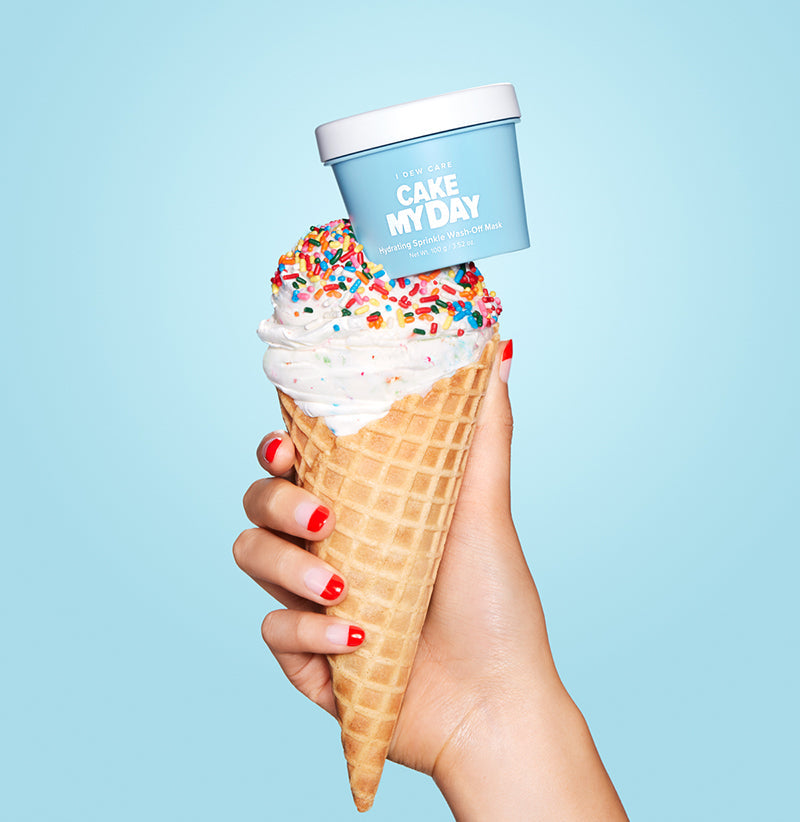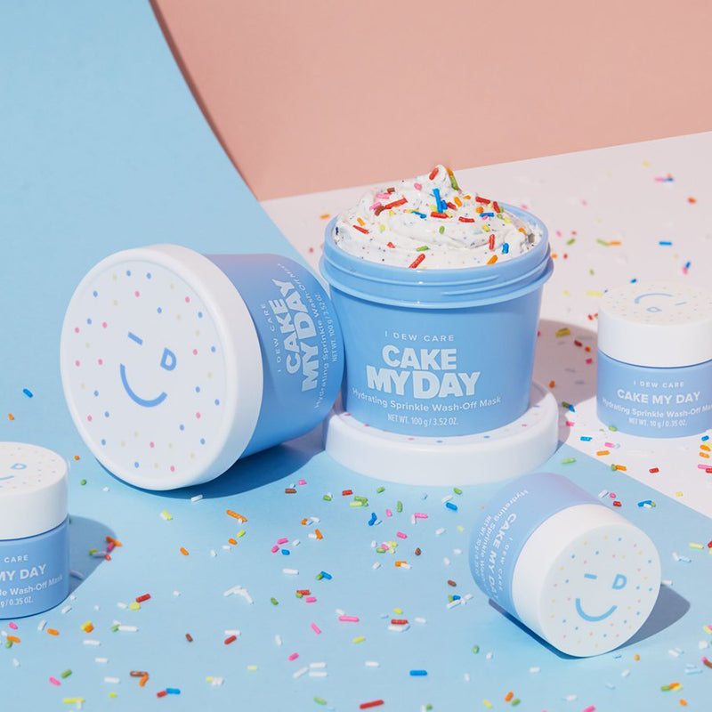 The I DEW CARE Cake My Day is a sprinkle wash-off mask has hydrating rainbow sprinkles, hyaluronic acid & a birthday cake scent (that smells yummy enough to eat) all wrapped up in a soft-serve textured mask, making hydrated skin a piece of cake!