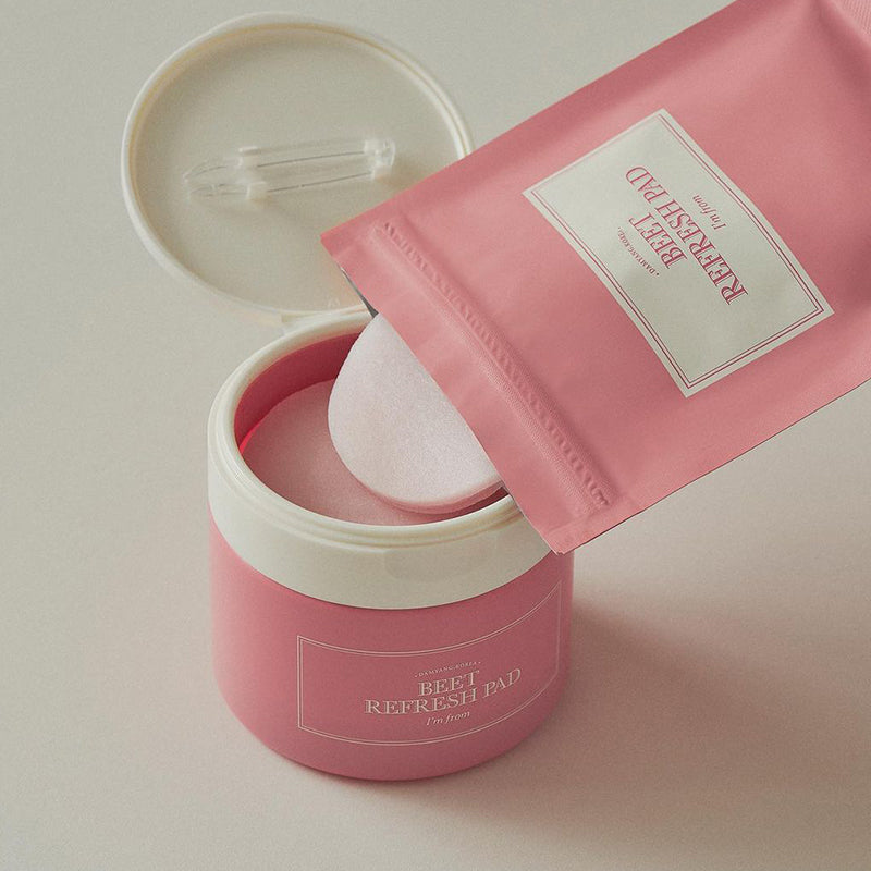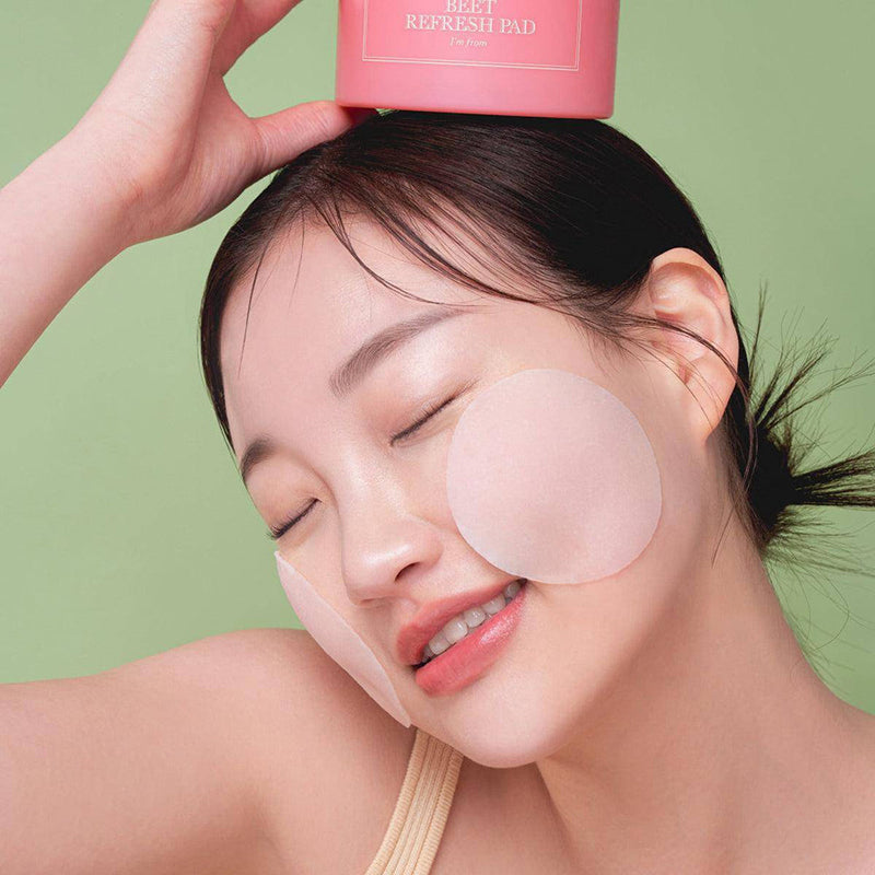 The I'm From Beet Refresh Pad brings a burst of revitalization and hydration with its essence-soaked toner pads, boasting 20% red beet extract. This potent formula packed with anthocyanin not only tackles dullness but also smoothens rough skin texture. It’s a skin-loving solution for all skin types, thanks to the beta-carotene found in red beet extract, offering a calming effect, it works wonders even for irritated skin.