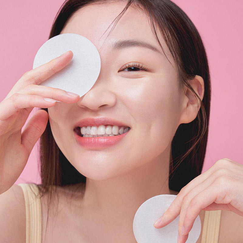 - After cleansing, use the embossing side of the pad to cleanse the face along the skin texture, avoiding the lip and eye areas.