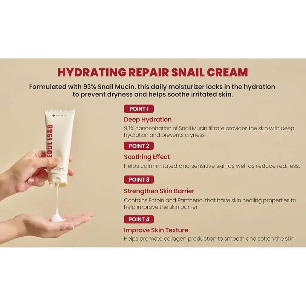 Revive your skin’s glow and resilience with the KSECRET SEOUL 1988 Cream: Snail Mucin 93% + Rice, a nourishing daily moisturiser formulated to hydrate, repair, and brighten. Infused with a high concentration of 93% Snail Mucin Filtrate, this cream supports skin regeneration, improves elasticity, and helps fade the appearance of acne scars and fine lines.