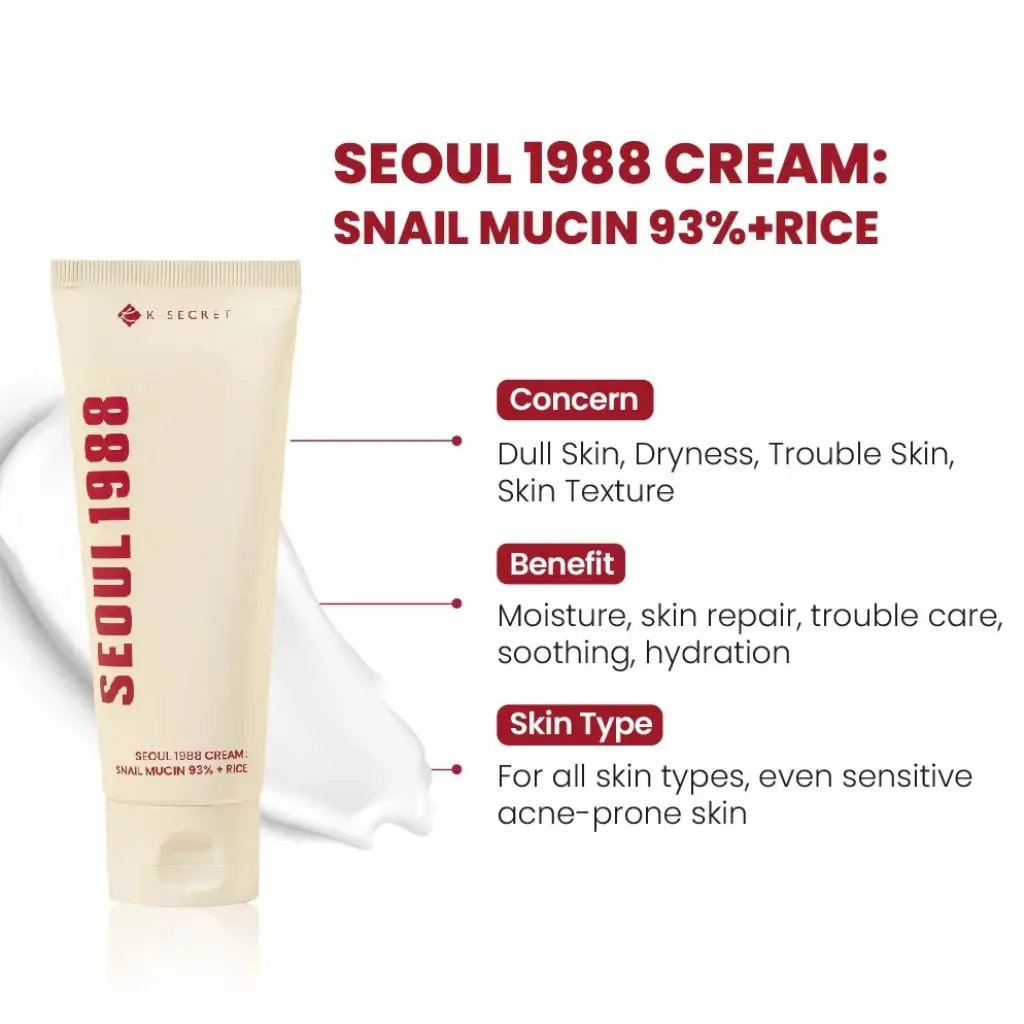 1 x KSECRET SEOUL 1988 Cream: Snail Mucin 93 Percent + Rice 100ml
