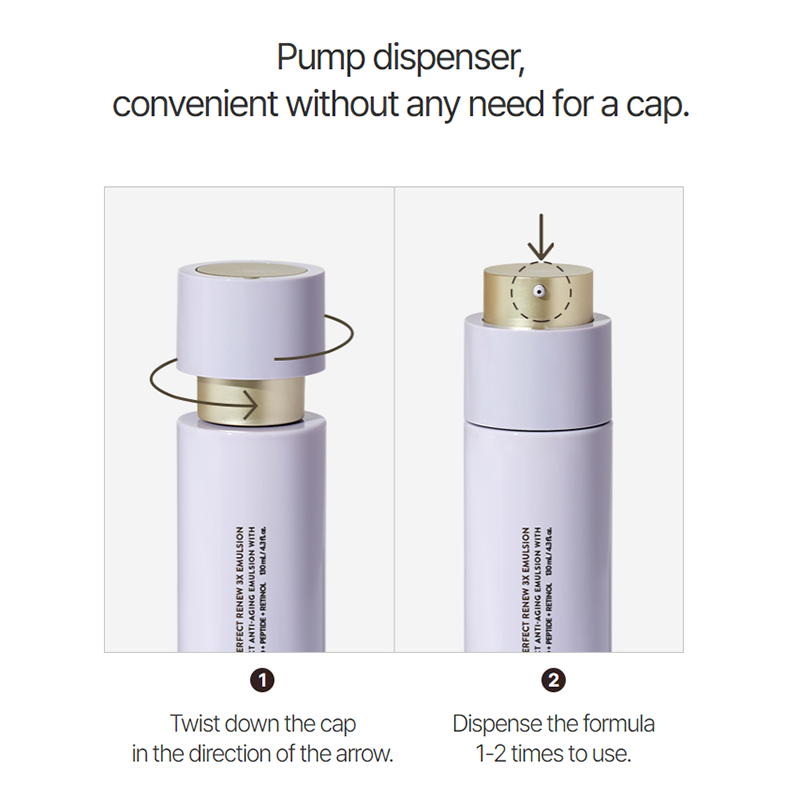 - After cleansing the skin, twist the bottle cap downwards to reveal the toners pump.