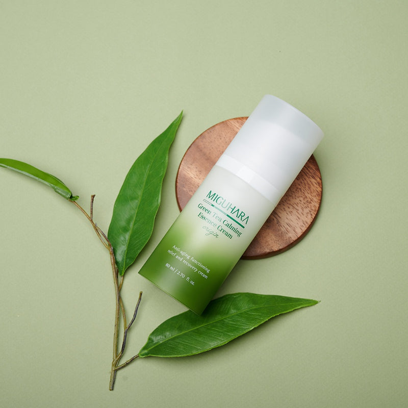 The MIGUHARA Green Tea Calming Essence Cream Origin is a relief and recovery cream that replenishes the skin. This cream has a low irritation, mild formula created with only EWG Green ingredients and free from ethanol and allergens. Green tea extract nourishes and soothes irritated skin. Ceramides help restore and repair healthy skin. This hypoallergenic formula is gentle and suitable for sensitive skin.