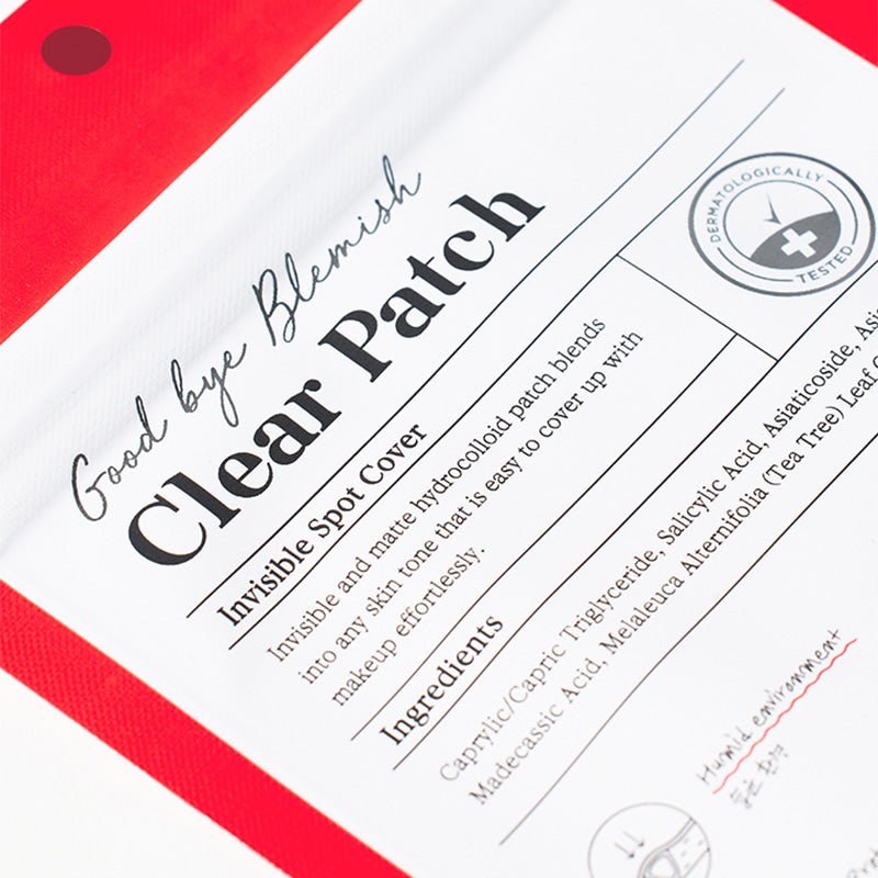 Mizon Good Bye Blemish Clear Patch is a discreet hydrocolloid spot patch designed to protect, cover, and heal pimples. It's matte, transparent finish blends into skin tone and can be worn under makeup or during showering thanks to its strong adhesion.