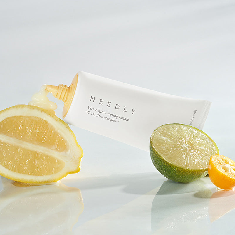 NEEDLY Vita C Glow Toning Cream is a brightening moisturizing cream that combines stabilized vitamin C derivatives and niacinamide with triple hyaluronic acids to hydrate while enhancing radiance.