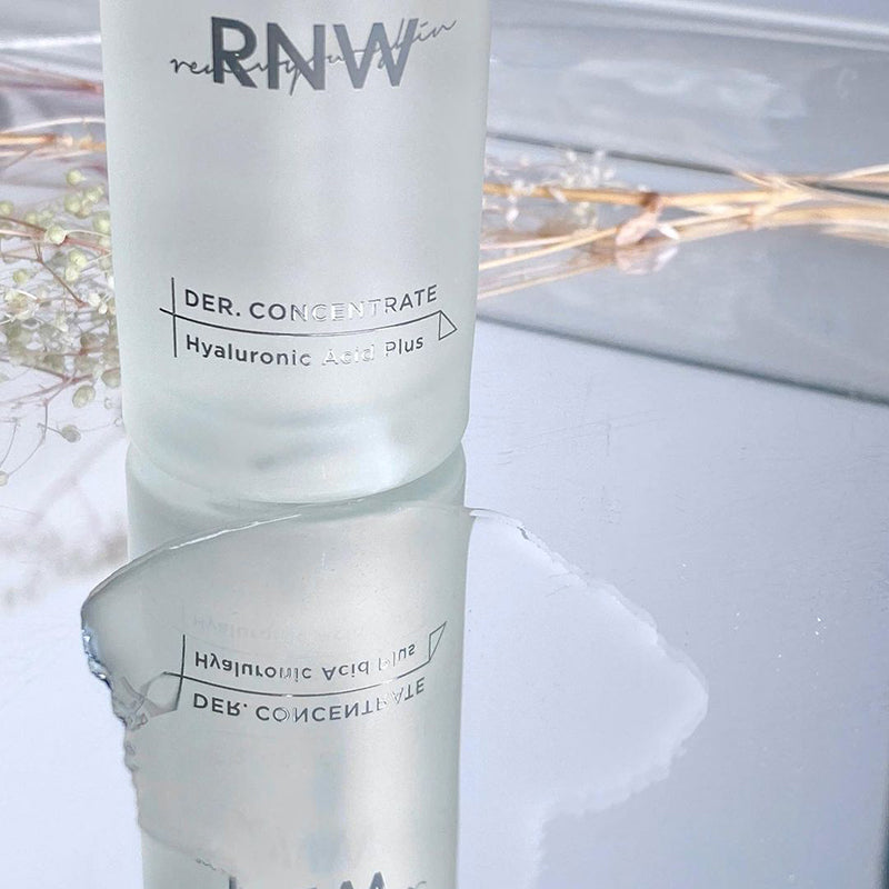 The RNW DER. CONCENTRATE Hyaluronic Acid Plus Serum is a powerhouse of hydration, boasting the benefits of 5 unique concentrations of Hyaluronic Acid, renowned for its exceptional moisturizing abilities. This lightweight serum not only quenches the skin's thirst but also works wonders for refining texture, thanks to Willow Bark Extract's gentle exfoliation that minimizes pores.