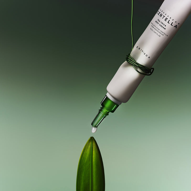 Target blemish-prone areas with the SKIN1004 Madagascar Centella Tea-Trica Spot Cream, a lightweight gel-cream designed to help improve the look of uneven skin texture. Infused with Tea Tree Leaf Water, Centella Asiatica Extract, and a Pine Tree Leaf Complex, it helps comfort sensitive skin while absorbing excess oil for a clearer-looking complexion.