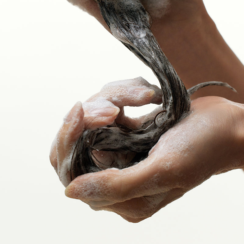 - Lather a normal amount of shampoo and apply to hair and scalp.