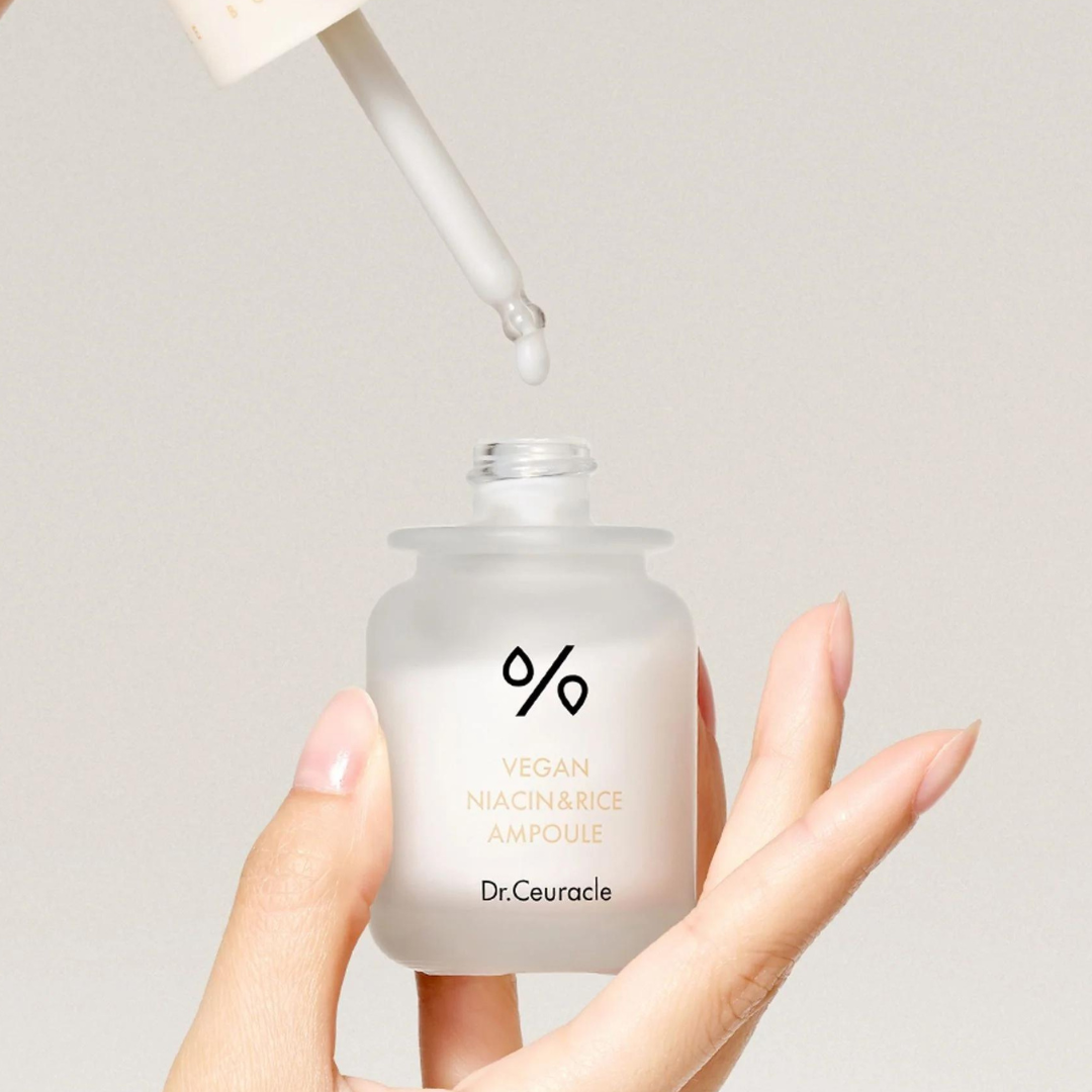 - A vegan ampoule that helps brighten and even out dull skin tone for a clearer, smoother complexion.